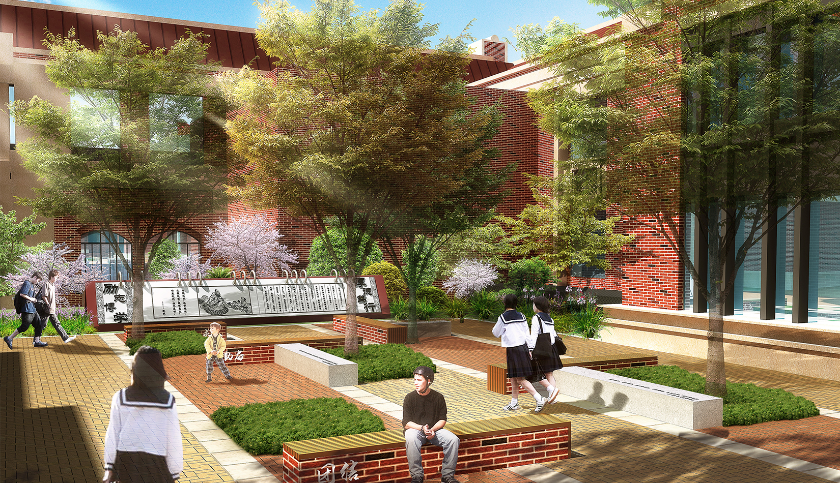 創(chuàng)建優(yōu)良的校園文化環(huán)境、營造充滿活力的室外景觀,給予學生豐富的活動空間。
