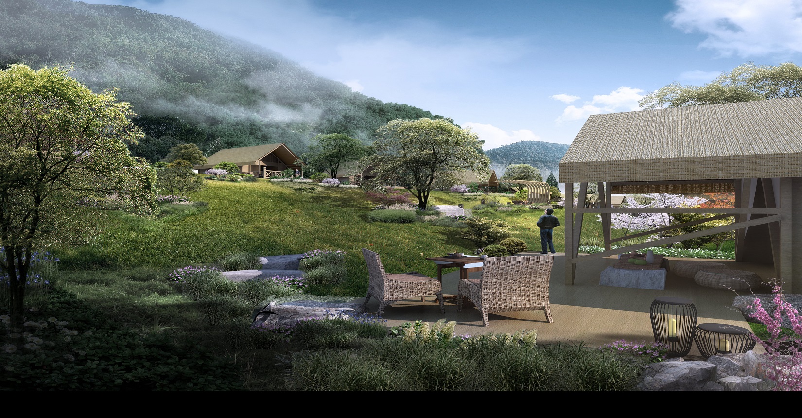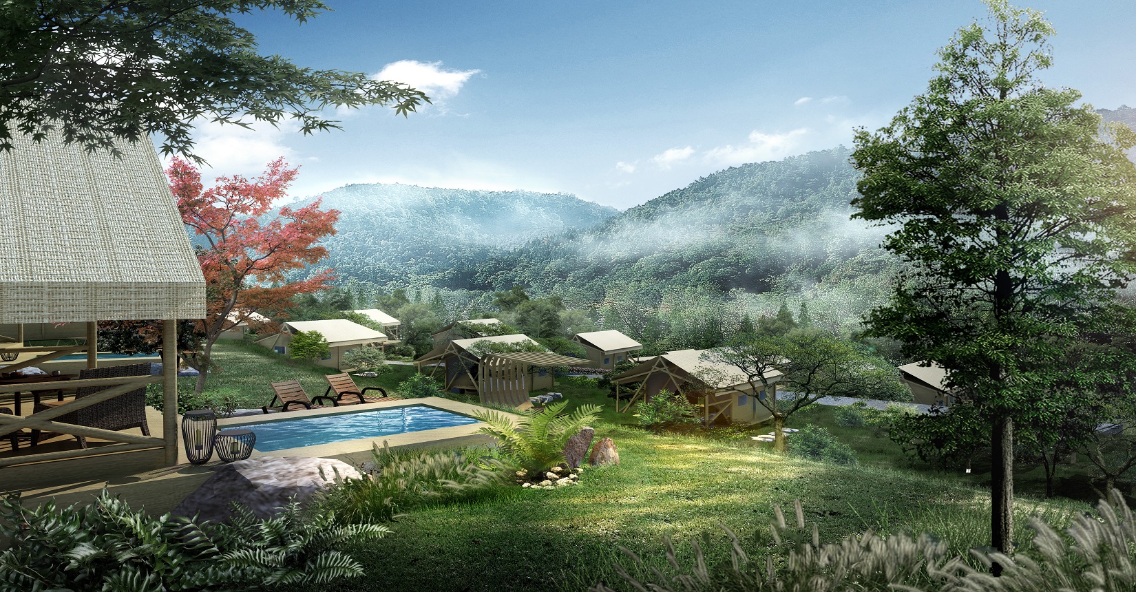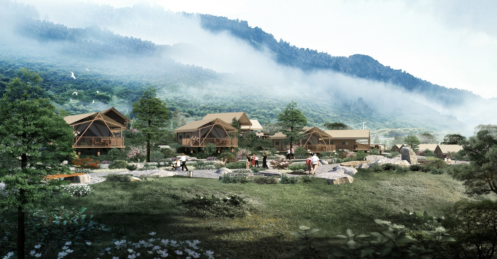 本項目的定位為自然、野奢的景觀風(fēng)格。對于野奢度假酒店景觀環(huán)境設(shè)計遵從“野”“奢”兩點(diǎn),融入荒野生態(tài)的設(shè)計理念,又要與場地相融合、與原生態(tài)相映、與當(dāng)?shù)氐拿袼罪L(fēng)情相交匯,突出當(dāng)?shù)氐奈幕黝},強(qiáng)調(diào)高品質(zhì)的自然、野奢度假,從而打造出一個具備個性與特色,使游客能夠享受到自然野趣體驗的景觀環(huán)境。
